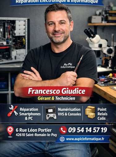 Située au cœur de Saint-Romain le Puy, Au Pic Informatique est votre partenaire de confiance pour tous vos besoins en informatique et multimedia. Depuis sa création, notre entreprise met un point d’honneur à offrir un service de proximité, rapide et personnalisé, que ce soit pour les particuliers ou les professionnels.